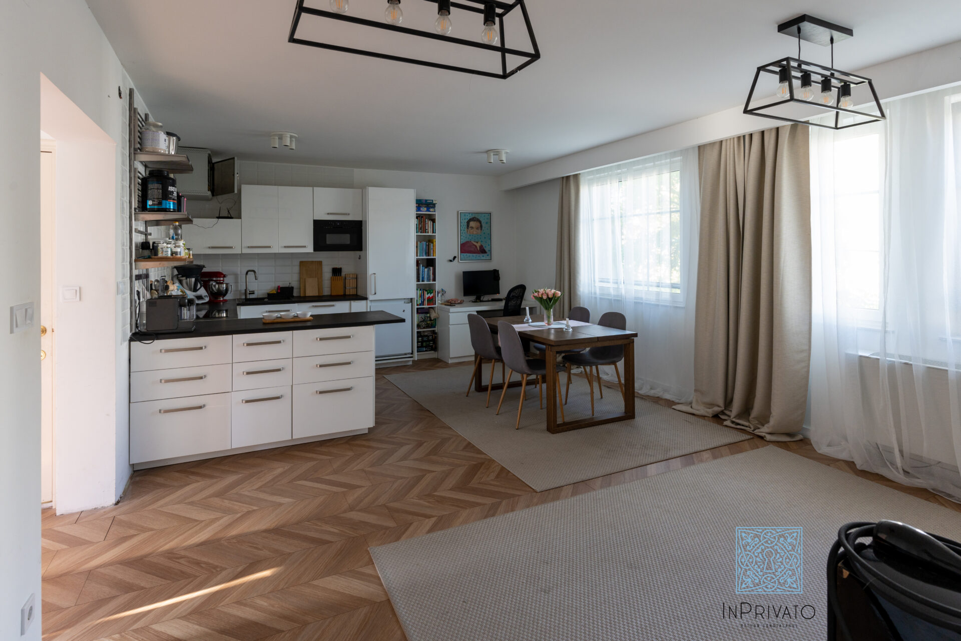- It was built on a plot of 454 m2, there are also 4 parking spaces in the yard and two shared-use storage rooms on the plot.
